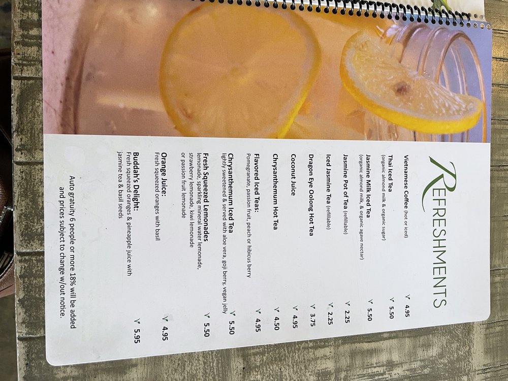 Tofu, bamboo shoots, enoki mushrooms, bean curd skins Sip garnished with scallions & cilantro